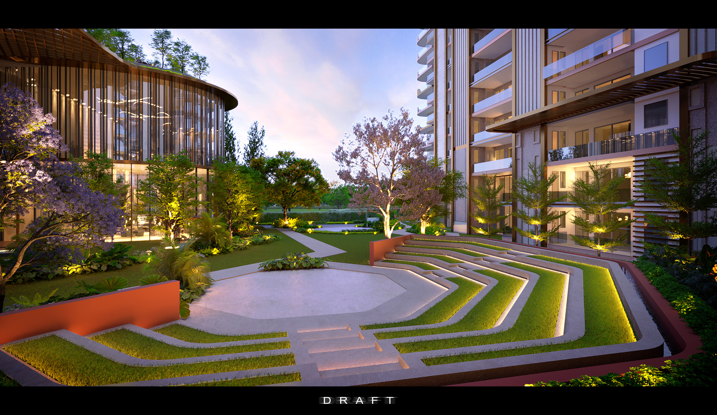 Explore exteriors, interiors, landscaped greens, clubhouse, rooftop leisure, and official documents of HighLand Mayfields, Mohali.